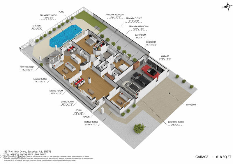 18317 116th Dr, Surprise, AZ 85378 and is listed for sale at $498,000.00. This home was built in 1997, contains 1964 square feet of living space, and sits on a 0.14 acre lot. This residential home is priced at $253.56 per square foot.