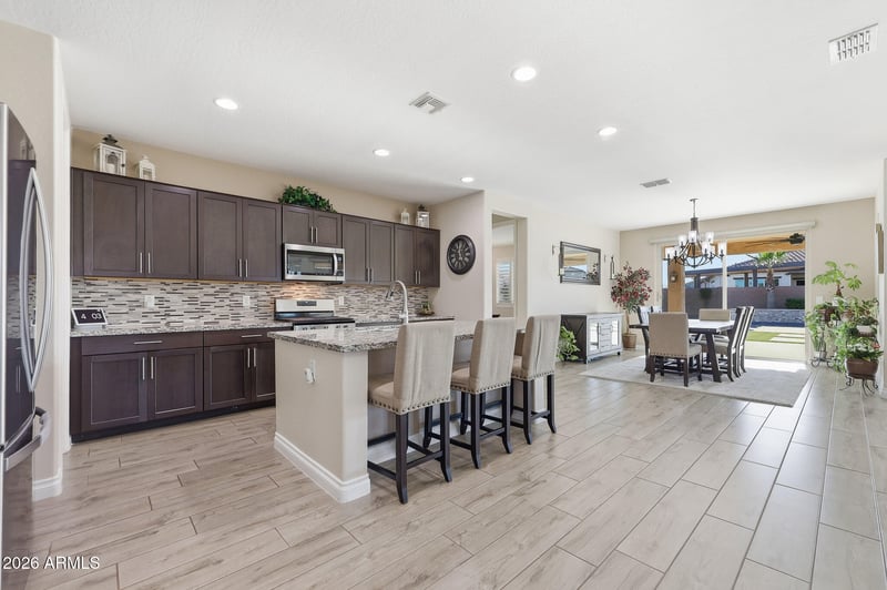 Inside, the thoughtfully designed floor plan showcases high-end upgrades, refined finishes, and abundant natural light. The outdoor living space is equally impressive, highlighted by a sparkling pool and a fully equipped outdoor kitchen—perfect for entertaining or unwinding in true Arizona style. With meticulously designed spaces both indoors and out, this home delivers elevated living in a secure and sought-after setting, conveniently located near shopping, dining, golf, and freeway access.