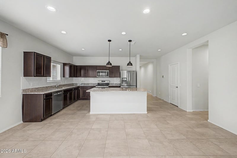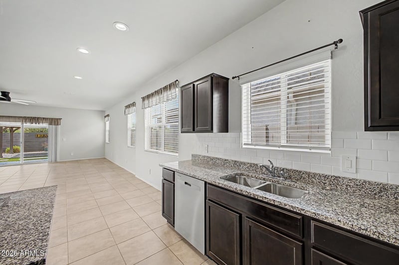 Listing details for 18363 W Whispering Wind Dr, Surprise, AZ 85387 : Welcome to this beautiful McCormick model in the highly desirable Rio Rancho Estates community in Surprise! This 3-bedroom, 2.5-bath home offers the perfect blend of comfort and style with no neighbors behind--giving you added privacy and stunning desert views. Enjoy daily hot air balloon sightings right from your backyard, creating a truly unique Arizona experience. Inside, the kitchen is a standout with shaker cabinets, granite countertops, a classic subway tile backsplash, and stylish pendant lighting. The open layout flows effortlessly, complemented by new ceiling fans throughout for year-round comfort. The home also features a tandem garage with built-in cabinets and an additional 5-foot extension--perfect for extra storage, a workshop, or accommodating longer vehicles. Step outside to a low-maintenance backyard featuring artificial turf, pavers, and a charming gazebo--perfect for relaxing or entertaining. This home has everything you need and more in a peaceful, sought-after neighborhood!