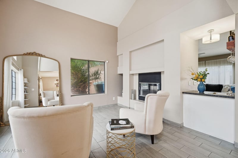 Listing details for 18415 46th St, Phoenix, AZ 85032 : Imagine a contemporary style home in a prime location at an unbelievable price...Your imagination comes to life with this one at an amazing price! Key items updated, including the roof and HVAC in 2019. Located in the HIGHLY DESIRABLE Paradise Valley School District. Enjoy the open kitchen featuring gorgeous white cabinetry, stainless steel appliances, a great island for extra workspace, and the perfect window to enjoy the backyard. Separate Dining Room w/modern light fixture and space to gather for meals and enjoyment. The spacious Living and Family Rooms are separated by a 2-way fireplace and feature soaring vaulted ceilings w/an abundance of natural light. The main floor has many modern features with updated ceiling fans, contemporary finishes and wood plank style tile flooring. and a fully renovated ensuite Bathroom complete with dual sinks, updated mirrors, flooring, vanities, and a beautiful custom tile shower with modern finishes. The additional Guest Bathrooms are equally impressive; the upstairs features dual sinks, stylishly updated fixtures and a shower/tub combo. The Powder Room features updated vanity, mirror, lighting and plumbing fixtures. Outside, the private backyard is a low-maintenance oasis with lush turf, and the two-car garage provides ample built-in storage. Situated in a prime location with easy access to both the 101 and 51 freeways, this home is just minutes from the premier shopping, dining, and entertainment at Desert Ridge.