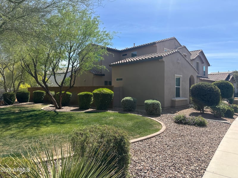 Listing details for 18421 65th Pl, Phoenix, AZ 85054 : Prime location in DR Horton's Paradise Ridge Gated Community. 2 story, 4 bedroom, 3 full baths, 2,007 sq ft home built in 2019. PREMIUM LOT that sides & backs to the green belt. 1 Bedroom/1 Bath downstairs, Primary Suite & 2 other Bedrooms Upstairs. 2 patios with one patio opening up to the side yard & the other patio off of the backyard. Kitchen is open to the family room & includes dark mahogany cabinets, granite counters, stainless steel appliances, an island & a pantry. Primary suite is over-sized w/His & Her closets. Secondary bedrooms are all over-sized. Community amenities include a heated pool/spa, BBQ & park area. Close to Desert Ridge Marketplace, Mayo clinic, Loop 101, Lifetime Fitness, Dining, Shopping & more. A Great House in a Great Location! Do not miss this opportunity!
