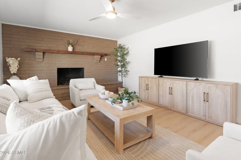 Listing details for 18428 42nd St, Phoenix, AZ 85032 : Fully reimagined, remodeled, and move-in ready home with stunning updates. This 4 bed, 3 bath home sits on a spacious .35 acre lot and features a split floor plan with two primary suites that are ideal for guests or multi-generational living. Inside offers designer finishes, beautifylly remodeled kitchen, a dedicated office, new laundry room, and fully renovated bathrooms with all new tile throughout. Enjoy naturally lit living spaces and a layout that flows effortlessly. The backyard is built for Arizona living with over 3,000 sq ft of pavers and 1,000+ sq ft of covered patio space, diving pool, wood burning outdoor fireplace with built in benches, plus endless potential to create your dream outdoor retreat. No HOA for short term rental possibilities. A must see!