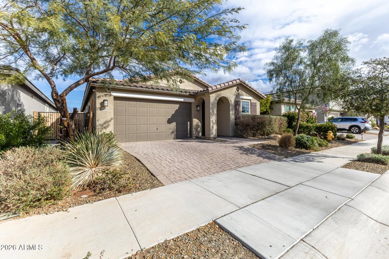 Listing details for 18474 Ipswitch Way, Surprise, AZ 85374 : Welcome to this charming single-level home in Bell Pointe! A 2-car garage, paver driveway, and a mature landscape are just the beginning. The inviting interior features abundant natural light, a neutral palette, recessed lighting, and soft carpet & wood-look flooring t/out. You'll love the seamlessly flowing open layout! With pre-wired surround sound, this home is ready to deliver an immersive audio experience for movies, music, and everyday living. The impressive kitchen boasts SS appliances, quartz counters, a tile backsplash, a walk-in pantry, white shaker cabinetry, and an island w/breakfast bar. The main bedroom has an ensuite with dual quartz sinks and a walk-in closet. Outback, you have a covered patio & well-laid pavers that create a welcoming outdoor living space. Make this yours!