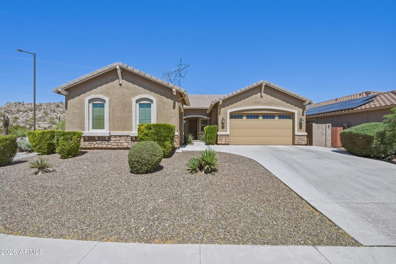 Listing details for 18526 Desert Trumpet Rd, Goodyear, AZ 85338 : Multigenerational living with privacy and views in the sought-after Horizon at Estrella! Tucked at the end of a quiet cul-de-sac and backing to natural preserve, this 2018-built home offers just under 2,600 sq ft with no neighbor to the west for added privacy. Featuring 3 bedrooms, a den, and 3 full baths, the flexible layout includes an attached casita with its own private entrance, separate single-car garage, and the ability to close it off from the main home--ideal for guests, extended family, or rental income. The spacious great room opens seamlessly to the backyard and mountain preserve through a 12' sliding glass door, creating the perfect indoor-outdoor Arizona lifestyle.