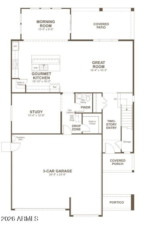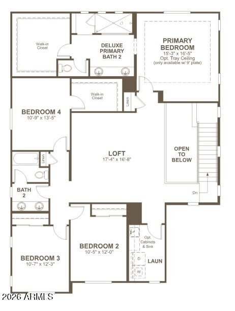 Listing details for 18539 Laurie Ln, Waddell, AZ 85355 : The main floor of the two-story Yorktown plan was designed for entertaining, offering an inviting great room, a charming morning room, a relaxing covered patio and a gourmet kitchen with a center island and walk-in pantry. You'll also appreciate a powder room, a covered porch and a portico. This level will be built with a study. Upstairs, discover a loft, a laundry, a shared bath and four bedrooms—highlighted by an elegant primary suite showcasing a roomy walk-in closet and a deluxe bath.