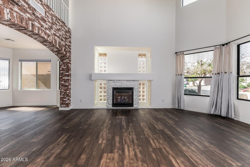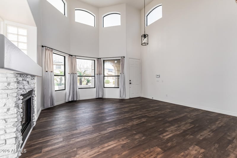 Listing details for 18609 Onyx Ave, Waddell, AZ 85355 : From the moment you arrive, you sense this home was designed with soaring ceilings and abundant natural light immediately create an open, airy feel. The home has paid for solar to minimize monthly expenses. The updated flooring flows seamlessly throughout, guiding you from the formal living and dining rooms into the heart of the home; a warm gathering space centered around a cozy fireplace and enhanced with surround sound for movie nights, holidays, and everyday moments. The kitchen is truly the soul of the home. Soapstone countertops provide timeless elegance, while the oversized island offers generous storage and a natural place for friends and family to gather. The custom Viking range, complete with six burners, a griddle, and double ovens, makes hosting effortless, complemented by updated appliances, a custom range hood, and a reverse osmosis system for added convenience. Designed with main-level living in mind, the home has one guest bedroom and a full bath downstairs. Upstairs, the primary suite is a peaceful retreat filled with natural light, space for a private reading nook, a very large walk-in closet, and a spa-inspired bath featuring double vanities, a separate soaker tub, and a walk-in shower. In the evenings, step onto your private balcony and unwind while taking in breathtaking sunset views. Upstairs opens to even more possibilities. A spacious flex area can easily transform into a family room, game room, media lounge, or creative space. Two bedrooms share a Jack and Jill bath, while an additional third guest bedroom enjoys its own en suite, making it ideal for guests or multigenerational living. Step into the backyard and you'll find an entertainer's dream. The park-like backyard is designed for year-round enjoyment with expansive pavers and multiple seating areas. The covered Ramada is complete with a commercial mister system, television, built-in barbecue, Traeger smoker, and multiple ceiling fans. Mature trees, including an orange tree, add charm and tranquility to this private outdoor oasis. Practical features elevate the experience even further: paid-for solar provides energy efficiency, and the oversized three-car garage features newly epoxied floors for a clean, polished finish. This is more than just a five-bedroom home, it's a space built for entertaining, relaxing, growing, and creating lasting memories. Every detail has been thoughtfully considered to blend comfort, functionality, and effortless luxury.