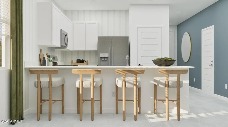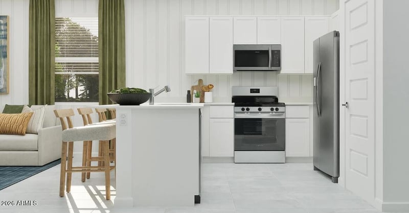 Summit Collection offers single-family homes in Montecito at Estrella, a new neighborhood in Goodyear, AZ. Residents enjoy 65+ miles of trails, 50+ parks, 72 acres of lakes, Yacht Club, and championship golf at the Golf Club of Estrella. They also have access to the lavish Presidio and Starpointe Residents' Clubs--featuring heated pools, fitness centers, restaurants, event spaces, and StarSplash WaterPark.This home comes fully equipped with all brand-new stainless steel kitchen appliances and is complete with 18x18 tile flooring, stunning quartz countertops, and stylish maple almond cabinetry, designed for both comfort and function. Photos are of a model home.