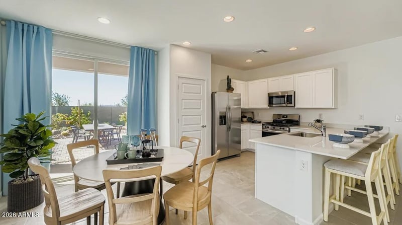 Summit Collection offers single-family homes for sale in Montecito at Estrella, a new neighborhood in Goodyear, AZ. Residents enjoy 65+ miles of trails, 50+ parks, 72 acres of lakes, Yacht Club, and championship golf at the Golf Club of Estrella. They also have access to the lavish Presidio and Starpointe Residents' Clubs—featuring heated pools, fitness centers, restaurants, event spaces, and StarSplash WaterPark.This home comes fully equipped with all brand-new stainless steel kitchen appliances and is complete with 18x18 tile flooring, stunning quartz countertops, and stylish maple linen cabinetry, designed for both comfort and function