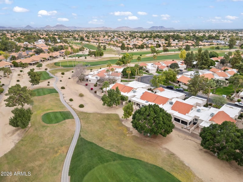 Listing details for 18834 95th Ave, Peoria, AZ 85382 : Impeccably maintained golf course home in the desirable niche community of Fairway Ridge in Westbrook Village. Offered fully furnished as a turnkey second home, just bring your clothes! What you see in the home will convey if you choose! Inviting paver courtyard welcomes guests into the spacious open living and dining space. Celestial windows brighten with generous natural light. Leaded glass French doors connect the den to great room. The sunroom with newly installed screens is a charming living extension of the home. Updated kitchen offers backsplash, refinished cabinets, pullouts, wrap around counters & island. Shutters on every window perfectly frame a beautiful golf course view. Remodeled bathrooms with new vanities and fixtures in 2025. Tile throughout. 2 car garage with attached storage cabinetry. Refrigerator, dishwasher, washer & dryer all new in Jan 2025. Roof replaced in 2024. Just up the street from the community pool that hosts neighborhood social gatherings. Find a vibrant active adult 40+ community with two 18-hole golf courses, driving range, community pools, gym, pickleball and tennis courts, wellness activities and more. Have an RV? There is onsite storage opportunity for RV's just down the street! Tree lined streets, lush landscaping will capture the charm that Westbrook Village offers. This one won't last long!