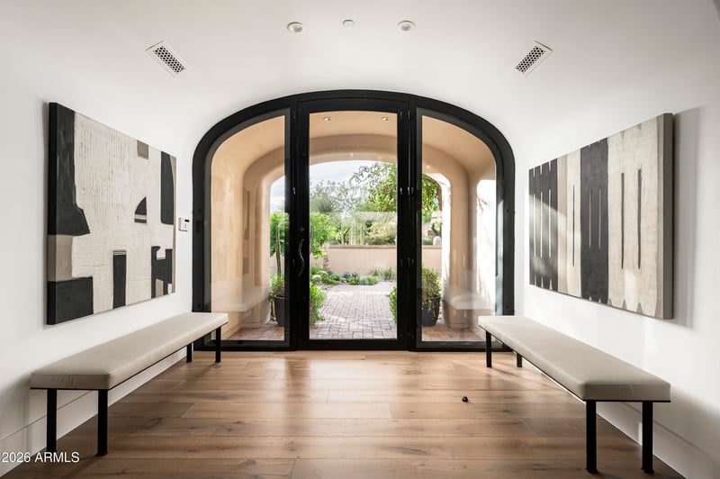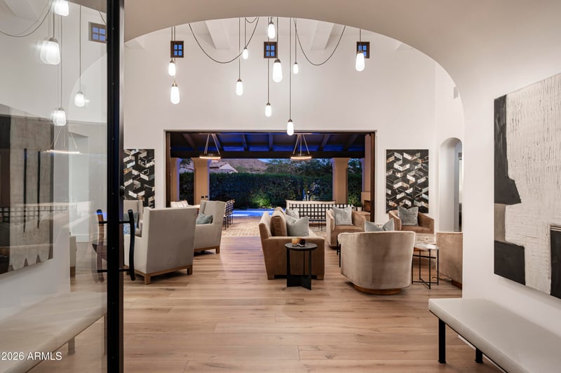 Listing details for 18875 101st Pl, Scottsdale, AZ 85255 : GOLF MEMBERSHIP TRANSFER IS AVAILABLE. Ideally located in the prestigious Horseshoe Canyon at Silverleaf, this charming single-level residence offers 3,693 square feet of beautifully designed living just moments from the Silverleaf Club, spa, and golf course. Thoughtfully designed for both comfort and entertaining, the home features three bedrooms, three-and-a-half baths, an oversized media room or office, and an open-concept kitchen and great room. Expansive pocket doors in the great room frame unobstructed views of the McDowell Mountains, creating a seamless connection to the outdoors. The backyard is a private oasis, complete with a pool with swim jets, a striking outdoor fire feature, built-in BBQ, lush landscaping, and a generous covered patio designed for year-round enjoyment. An additional indoor fireplace adds warmth and ambiance to the main living space. With a two-car garage and a highly desirable single-level layout, this residence embodies effortless desert living in one of Silverleaf's most sought-after enclaves. This home is being offered fully furnished.
