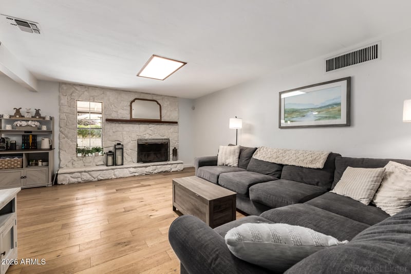 Listing details for 1903 Palo Verde Dr, Phoenix, AZ 85016 : Discover this beautifully updated 3-bedroom home in the sought-after Wrigley Terrace neighborhood, offering comfort, style, and an unbeatable central Phoenix location. Inside, you'll find a welcoming living space highlighted by engineered hardwood flooring and a striking rock fireplace, creating a cozy focal point for the family room. The remodeled kitchen (2017) features modern finishes, generous counter space, and a functional layout that flows seamlessly into the main living areas--perfect for both everyday living and entertaining. The home has been thoughtfully updated over the years with newer windows, interior doors, refreshed bathrooms, and tile flooring in the primary and secondary bedrooms. Major improvements include a new roof (2018), AC unit installed in 2013, updated interio and exterior paint, smart thermostat, electronic locks, and a Level 2 EV charger for convenient at-home electric vehicle charging.