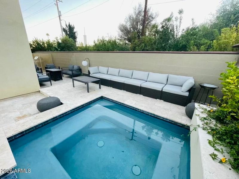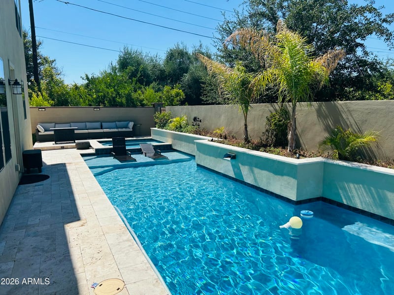 Listing details for 1910 Missouri Ave, Phoenix, AZ 85016 : A rare find in a historic Phoenix neighborhood, this open concept 2014-built contemporary home offers over 2,100 square feet of effortless living. Just steps from the Biltmore Corridor, you're within walking distance to Biltmore Fashion Park, Trader Joe's, Whole Foods, and charming boutiques. Inside, an open-concept layout invites entertaining, while the kitchen boasts granite counters and plenty of storage. The backyard is your personal private oasis, featuring a a large 8.5 foot deep pool, jacuzzi that seat 8 comfortably, gas connection for an outdoor girll, and space to entertain. Upstairs, three spacious bedrooms await, all with ample closets and the laundry room conveniently located near them. A half bath downstairs makes entertaining a breeze. The home also features a two-car garage.