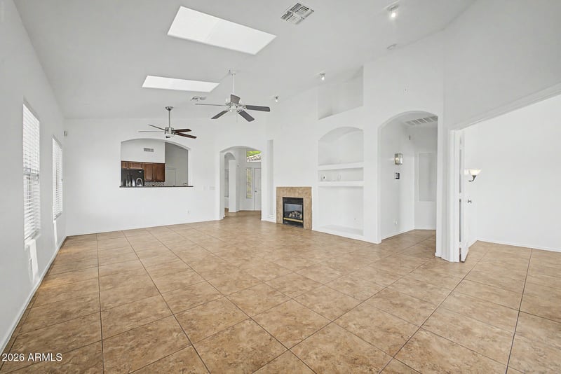 The open floor plan features vaulted ceilings and abundant natural light throughout. The kitchen flows seamlessly into the main living areas, making it ideal for both everyday living and entertaining.