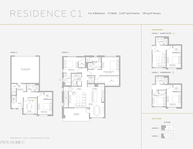 Listing details for 19360 73rd Way #1031, Scottsdale, AZ 85255 : Atavia is a first of its kind product, combining the convenience of a lock-and-leave condominium with your own attached private two-car garage. Belgravia Group presents Atavia, a gated community of 88 luxury condominiums in North Scottsdale, featuring a Taliesin West inspired clubhouse with fitness center, yoga studio, golf simulator, and resort-style pool. Residence C is a duplex home featuring 3 or 4 bedrooms and 3.5 baths, with a flexible first-floor complete with private-entry, mudroom, office, bedroom, and full bathroom. The open-concept second level connects kitchen, dining, and living spaces with a generous primary suite including a huge (18 foot!) primary closet. An elegant powder room, ensuite secondary bedroom, and 195 square foot balcony complete the second floor.