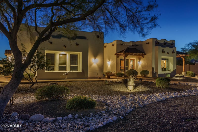 Listing details for 19707 Mariposa Dr, Litchfield Park, AZ 85340 : Welcome to this elegant 4 bed, 3 bath home with a 3-car garage on an acre with no hoa! Owned Solar Panels. Showcasing refined finishes, wood ceilings, and impressive curb appeal that sets the tone from the moment you arrive. The living room offers a wet bar complete with a beverage fridge. The kitchen features granite countertops, stainless built-in appliances, and dual breakfast bars, flowing into sophisticated living spaces with a beehive fireplace. Retreat to the serene primary suite featuring double doors to the patio, walls of windows with tranquil pool views, and a spa-like ensuite with soaking tub and walk-in shower. Two secondary bedrooms share a convenient Jack and Jill bath. Step outside to a true backyard retreat, an exceptional saltwater pool with in-floor cleaning, water features, and a slide, complemented by elevated seating overlooking the water. The expansive covered patio creates the perfect setting for upscale entertaining, with RV gate and parking adding convenience. Don't miss your chance to own this one-of-a-kind retreat.