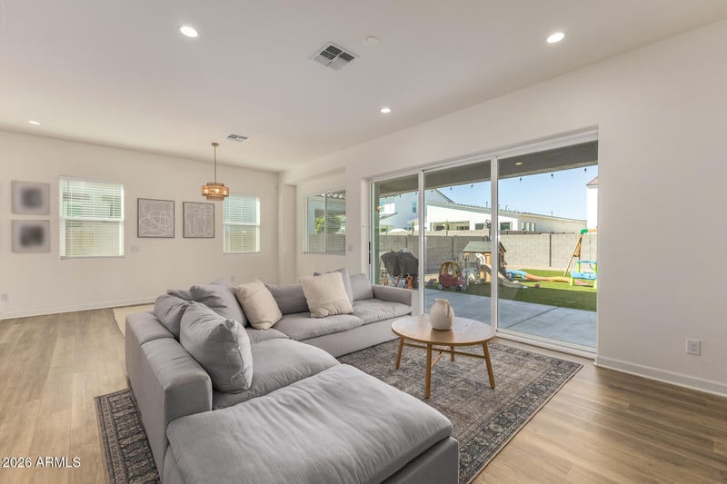 Listing details for 19762 Exeter Blvd, Litchfield Park, AZ 85340 : Looking for a new home? This beautiful single-level residence in Verrado is the one! Displaying a 2-car garage, low-care landscape, and great curb appeal w/veneer accent details. The interior exudes refined style with tons of natural light, tall ceilings, neutral palette, contemporary light, and wood-look flooring t/out. You'll love the spacious, seamlessly flowing open layout paired with multi-sliding doors merging the inside & outside activities! The impressive kitchen boasts SS appliances, granite counters, flat-panel cabinetry, a pantry, and an island with a breakfast bar. The carpeted primary bedroom has an ensuite with dual sinks and a walk-in closet. Check out the large backyard with a covered patio & artificial turf, where you can relax or have a fun gathering! Don't miss this gem!