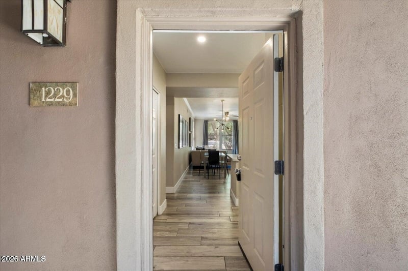 Listing details for 19777 76th St #1229, Scottsdale, AZ 85255 : This beautifully updated ground-floor, 2-bedroom, 2-bath condo offers convenient single-level living and is located within the desirable Venu at Grayhawk community. The open, airy layout is highlighted by newly installed wood-look tile flooring that runs throughout the home. The bright white kitchen serves as the heart of the space, featuring a tile backsplash, stainless steel appliances, and an extended counter that provides convenient seating. The adjacent dining and living areas connect effortlessly, creating a comfortable setting for both everyday living and entertaining. A fireplace adds warmth and charm, and the TV mounted above it will convey with the sale. The HVAC system was replaced in 2022. The spacious primary bedroom includes direct access to a private covered patio. The ensuite bathroom showcases an elegant white and gray tile walk-in shower, providing a spa-like feel. The home includes a 1-car garage plus an additional reserved parking space. Life at Venu at Grayhawk offers a true resort-style experience with access to a luxury clubhouse, large community pools and spas, a fully equipped fitness center, a gourmet chef's kitchen, a private movie theater, and a spa. The location is equally impressive, just minutes from shopping, dining, golf courses, outdoor recreation, major highways, and nearby medical facilities.