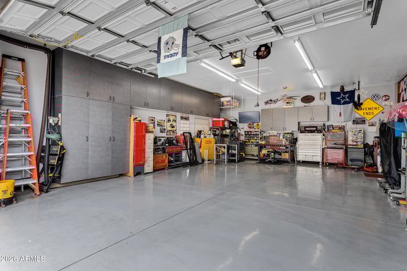 The property also includes a well-built RV garage with extensive storage. ideal for a workshop, hobby area, or Backing directly to the Queen Creek Multi-Use Trail and Wash, you'll enjoy peaceful views and immediate access to miles of walking, biking, and outdoor recreation, with the trail leading straight to Mansel Carter Oasis Park.
