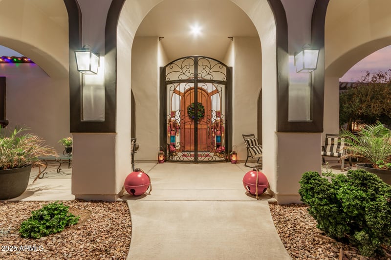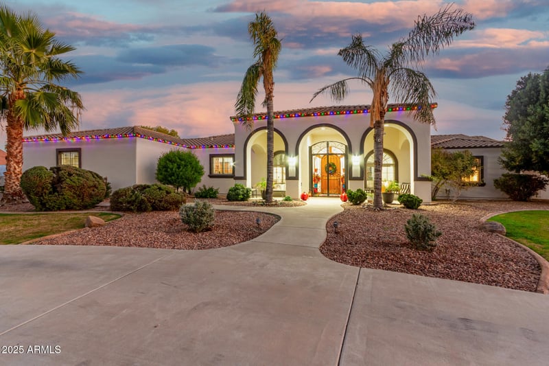 Listing details for 19975 Via Del Palo --, Queen Creek, AZ 85142 : This exceptional 5-bedroom, 5.5-bath property spans 3,614 sq ft and combines luxury and space in the highly desirable Circle G Ranches neighborhood. The unique split floor plan ensures every bedroom has its own full bath and walk-in closet, providing privacy and comfort for family and guests. Recent 2025 upgrades include new roof underlayment, fresh interior and exterior paint, new pergola, front irrigation and landscaping, wrought-iron front gates, new interior light fixtures, ceiling fans throughout, and a remodeled fireplace. The kitchen also features thoughtful updates, creating a bright and inviting space. The property features an oversized 3-car garage and a leased solar system with battery backup. There is plenty of space to bring all your toys, as the HOA allows RVs, ATVs, and more. Horses are welcome on the property, and the neighborhood offers convenient horse trails, making it easy to enjoy an equestrian lifestyle.