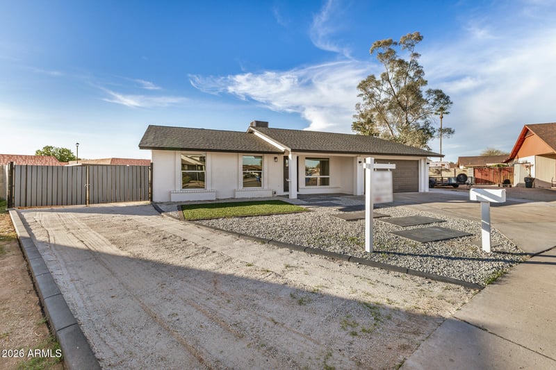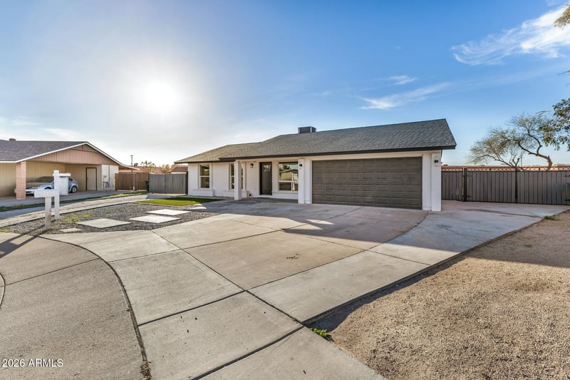 Listing details for 2 130th Pl, Chandler, AZ 85225 : This thoughtfully updated 3-bedroom home welcomes you w/ a 2-car garage & RV gates for convenience. You'll be delighted by the renovated interior, boasting a spacious open layout w/ a soothing palette, blinds, & durable tile flooring. The upgraded kitchen comes w/ sleek quartz counters, white shaker cabinets, a striking tile backsplash, stainless steel appliances, & an island w/ a breakfast bar. The primary bedroom showcases sliding door access to the backyard for seamless indoor-outdoor living, a private bathroom, & a walk-in closet. Spend enchanting evenings in the sizeable backyard, featuring a covered patio, stylish pavers, & pristine artificial turf. The City of Chandler has approved up to 3 Additional Dwelling Units for use on the property. It's the largest lot in the subdivision! Also, the City of Chandler has approved up to 3 Additional Dwelling Units for use on the property.