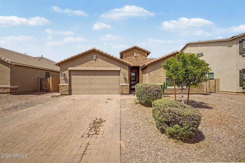 Listing details for 2000 Madisen Marie Ave, San Tan Valley, AZ 85144 : Spacious, upgraded, and move-in ready--this San Tan Valley home offers the perfect blend of functionality and style with room for everything you need. Featuring 4 bedrooms plus a den, this thoughtfully designed layout provides flexibility for a home office, playroom, or additional living space. The open-concept floor plan creates a seamless flow between the living, dining, and kitchen areas--ideal for both everyday living and entertaining. At the heart of the home is a beautiful kitchen complete with granite countertops, double oven, large pantry, and an abundance of cabinetry for exceptional storage. Whether you're hosting guests or enjoying a quiet night in, this kitchen delivers both style and practicality. The spacious primary suite is designed for relaxation, featuring a soaking tub, separate shower, spacious walk in shower and a comfortable layout that creates a true retreat. Additional bedrooms are generously sized, offering versatility for family, guests, or work-from-home needs. Car enthusiasts and outdoor lovers will appreciate the tandem 3-car garage, side garage door, and RV gate--providing ample space for vehicles, toys, and storage. Soft water loop add extra convenience and efficiency. Step outside to your private backyard oasis, where a newer PebbleTec play pool invites you to relax and enjoy Arizona living year-round. The low-maintenance yard makes it easy to spend more time enjoying and less time maintaining. With a low HOA and priced to move, this home presents an incredible opportunity for buyers seeking value, space, and upgrades in a desirable San Tan Valley location. Don't miss your chance to own a home that truly checks all the boxes--space, storage, upgrades, and a backyard built for enjoyment.