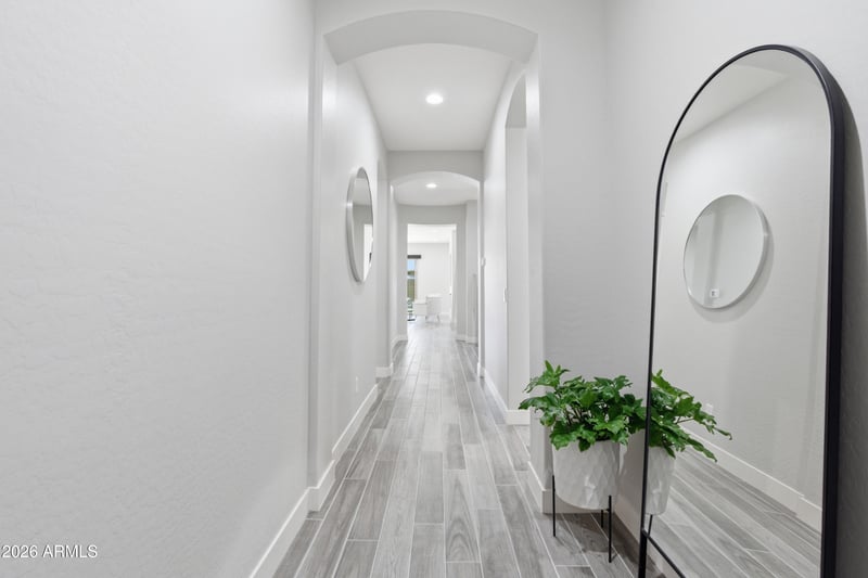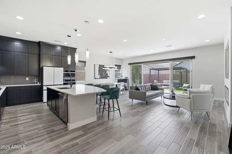 Listing details for 20008 231st Pl, Queen Creek, AZ 85142 : Sleek, modern, & meticulously maintained, this home offers over $125K in upgrades & a thoughtfully designed open layout. The gourmet kitchen features Monogram Series Minimalist Collection appliances, including a gas cooktop & Advantium oven, quartz countertops, upgraded stacked cabinetry, & an island with built-in recycle center. Plank tile flooring flows throughout the main living areas. The great room is highlighted by a fireplace & a 16' glass atrium slider for seamless indoor-outdoor living. The primary suite includes a spa-inspired bath with rain shower. Additional features include dual energy to cooktop & dryer, jack shaft garage opener with keyless entry, Evolve water softener, & prewire for security cameras & surround sound. A perfect blend or modern design & high-end function.