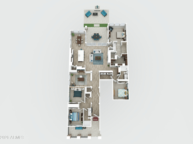 Listing details for 20065 229th Way, Queen Creek, AZ 85142 : Welcome to this stunning furnished model home featuring the Live Oak floorplan with 4 bedrooms, 4 bathrooms, and an office. Thoughtfully designed with premium upgrades, designer accents, and elegant blinds throughout, the inviting great room showcases a sleek insert fireplace and a center sliding glass door that opens to a serene covered patio and backyard. The gourmet kitchen impresses with built-in stainless steel appliances, quartz countertops, and an expansive island with a breakfast bar. The primary suite features a tray ceiling, direct patio access, and a lavish ensuite with a framed mirror, dual sinks, and a custom closet with built-in shelves and drawers. Enjoy a beautifully landscaped backyard, perfect for relaxing or entertaining. Included in every home: tankless water heater, spray foam attic insulation, energy-efficient HVAC, two-tone paint, brick paver driveway, and ceiling fans.