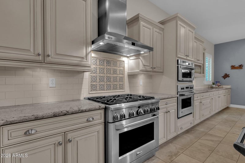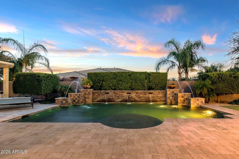 Listing details for 20137 Via Del Palo --, Queen Creek, AZ 85142 : Luxury Living in Montelena - Tuscan-Inspired Former Model Home. Discover unparalleled elegance in this sprawling 4-bedroom, 3.5-bathroom semi-custom home, nestled on a private oversized corner lot in the highly sought-after Montelena community. Adjacent to a serene greenbelt, this former model home boasts Tuscan-inspired architecture and high-end finishes throughout.Step into the lush backyard oasis, where a travertine patio surrounds a sparkling PebbleTec pool. Host unforgettable gatherings under the charming gazebo, complete with a built-in grill--an entertainer's dream!Inside, the open-concept floorplan is designed for both comfort and sophistication. The chef's kitchen features Monogram stainless steel appliances, a six-burner gas range, granite countertops, reverse osmosis soft water system, and extended cabinetry for extra storage.The luxurious main suite is a true retreat, offering coffered ceilings, double vanities, a separate shower and tub, and a huge custom closet.A private casita with its own separate entrance, kitchenette, and laundry closet provides the perfect space for guests, multi-generational living, or a home office.Designed for efficiency, this home includes an owned solar system, keeping energy costs low. Located just minutes from shopping, dining, and entertainment in Queen Creek, with easy access to parks and the scenic San Tan Mountains, this exceptional property offers luxury, convenience, and the best of Arizona living.