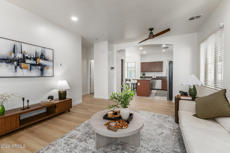 Listing details for 2032 77th Ln, Phoenix, AZ 85035 : WOW! This home features numerous recent upgrades and improvements, including fresh interior paint throughout, new luxury vinyl flooring, and new carpet installed in the bedrooms and on the stairs. Additional updates include a new water heater, new microwave, new garbage disposal, and new ceiling fans in all bedrooms, enhancing both comfort and functionality. Certain staging items may be available for purchase under a separate bill of sale. Enjoy of the resort-like pool this Community offers. The property is close to shopping, dining, entertainment, & easy access to I-10. MUST SEE!