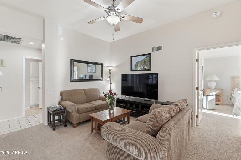 Listing details for 20409 133rd Way, Sun City West, AZ 85375 : Beautifully maintained former Del Webb model home in the desirable Crown Ridge neighborhood. This Cameron floor plan offers 2 bedrooms, 1.75 baths, and approx. 1700 SF of comfortable, low‑maintenance living. Major updates include a new AC system, new energy‑efficient windows, updated interior window shades, and a new roof in 2019. Plantation shutters add classic style throughout. The bright layout features a formal living room, a family room with a two‑sided gas fireplace, and an eat‑in kitchen overlooking the beautiful backyard. The kitchen includes a gas cooktop, Silestone counters, recessed lighting, a newer fridge, and a bay‑window dining area with access to the covered patio. Split bedrooms provide added privacy, and the expanded laundry room offers an ex hobby space. Newly installed gutters add exterior protection. Enjoy peaceful outdoor living with mature trees and a producing orange tree perfect for morning coffee and sunrise views. Located in a low tax area with rentals allowed. Sun City West offers recreation centers, golf, clubs, restaurants, and endless amenities. Come live the good life today.