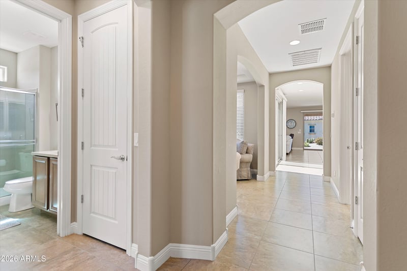 Listing details for 20410 275th Dr, Buckeye, AZ 85396 : A HEAVENLY HAVEN located on a corner lot. Enter this open concept floor plan w/newer premium paint, upgraded flooring, custom window treatments & storage options throughout. The spacious living/dining area features a media wall & seamlessly flows into the gourmet kitchen w/premium appliances, lux cabinet layout, miles of granite counters, tile backsplash and large island with seating. All this overlooking the private courtyard, perfect for morning coffee. Owner's suite has adjoining bath w/a zero threshold tile surround shower, granite counters, vessel sinks, & a large walk-in closet. The den can be used for an office or hobbies. Guest room has adjacent full bath, perfect for your guests. Enjoy outdoor living on your extended patio overlooking the beautifully landscaped, private yard.