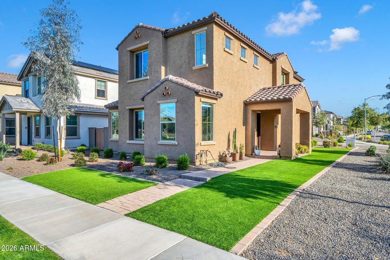 Listing details for 2042 Lariat Ln, Phoenix, AZ 85085 : Situated on desirable corner lot, beautifully upgraded home features neutral paint tones & abundant natural light throughout. Exterior highlights include low-maintenance landscaping, stylish entryway, & a gas stub for firepit or BBQ. Inside, the open layout is enhanced by 8' interior doors, 5'' baseboards, & durable 6x24 tile in the main living areas, w/ upgraded carpet & pad in the bedrooms, stairs, & hall. Kitchen showcases quartz countertops, white shaker-style cabinetry with a boxed-in refrigerator, & SS appliances including a gas range. Primary bath offers a walk-in shower w/ clear glass enclosure. Electrical, low-voltage, & plumbing upgrades throughout include ceiling fan prewires, pendant light prewires, & a water softener rough-in.
