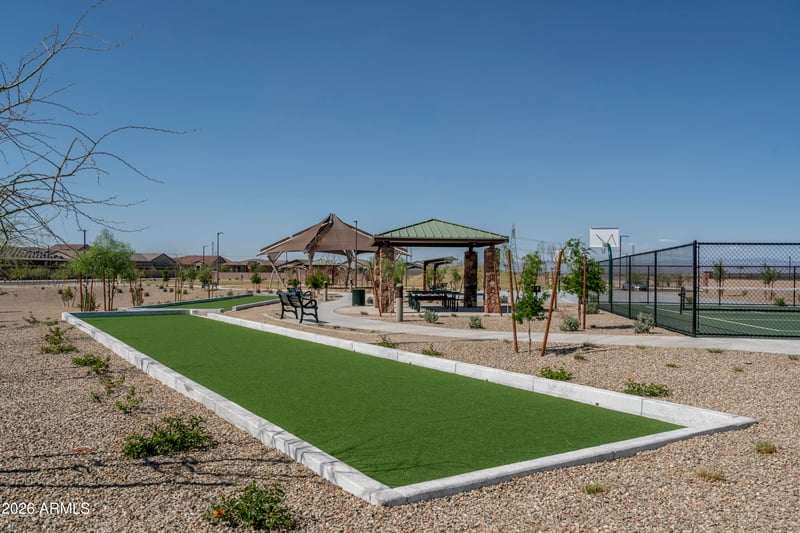 Listing details for 20422 222nd Dr, Surprise, AZ 85387 : Emphasizing privacy with a split-bedroom layout. Kitchen and living areas perfect for entertaining. A flex room, ensuite bedroom, large pantry, super laundry room, three full baths, plus a half bath for guests enhance functionality and flow. Primary bath has super luxury shower! Jack and Jill bathroom too. We've added 10-foot ceilings, 8' interior doors. Smart Home system, upgraded electrical package, drop zone cabinets. Entertain in this kitchen! Quartz countertops, 4''x4'' stylish backsplash, 42'' Benton Flagstone cabinets, huge island, breakfast bar. Upgraded Cafe appliances! Wood look tile in all the right places, upgraded carpet, brushed nickel finishes and hardware. Three car garage with 8' door, garage service door, soft water loop. Large corner lot, space for double gate! Come see!