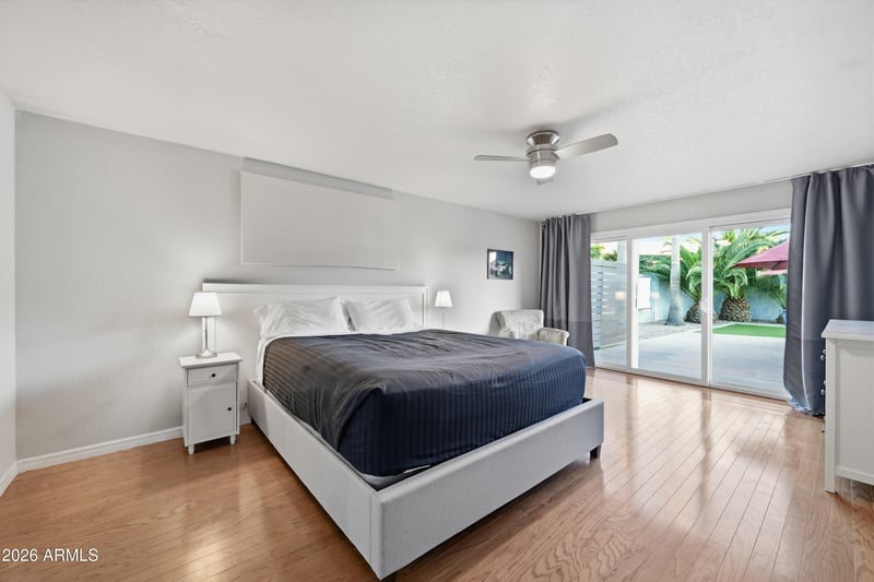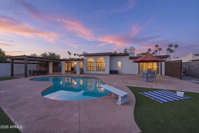 Listing details for 2043 Vaughn St, Tempe, AZ 85283 : Set within a well-kept upscale Tempe neighborhood with no HOA, this exceptional residence is positioned on a substantial lot, offering a lifestyle of scale, privacy, and presence. The interior is defined by large rooms and soaring ceilings, highlighted by exposed beam vaulted ceilings & refined wood-planked detailing that elevate the home's architectural appeal. Designed for elevated entertaining, the experience begins in a welcoming front courtyard and flows seamlessly into a resort-style backyard featuring a diving pool, curated lounge areas, and a private outdoor movie screening space. Located just minutes from major freeway corridors with effortless access to ASU, Downtown Phoenix, and Sky Harbor Airport, along with walkable convenience to Trader Joe's, Petco, Tempe's multi-use trails