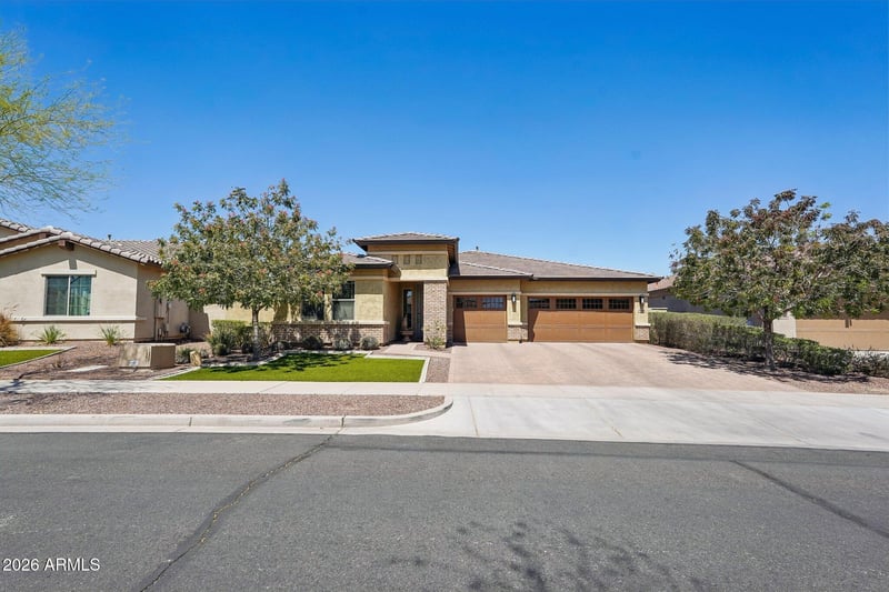 Listing details for 20510 Park Meadows Dr, Buckeye, AZ 85396 : Located in the highly desirable Verrado community, enjoy tree-lined streets, parks, golf, dining, tennis, and a true small-town feel. This spacious and inviting Kennedy floor plan, offers 4 large bedrooms plus a versatile den/office. The central family room creates a natural gathering space, with bedrooms split from the master for added privacy. An elegant dining area opens to a generous kitchen and great room, ideal for everyday living and entertaining. Features include upgraded Cherry Bordeaux cabinets, stainless steel appliances, granite countertops, a glass and marble mosaic backsplash, upgraded tile and wood flooring, an insulated garage, and RO system. Low maintenance front and back yard with a firepit for those cozy nights and year round events for residents