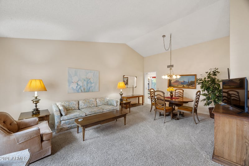 Listing details for 20606 Stonegate Dr, Sun City West, AZ 85375 : Welcome to this beautifully maintained home offering comfort, functionality, and classic charm in the heart of Sun City West. This inviting residence features a bright and open floor plan with soaring vaulted ceilings, creating an airy and spacious feel throughout the main living areas.