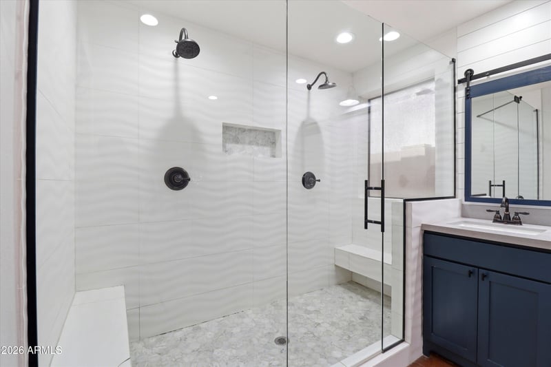 Listing details for 20615 9th St, Phoenix, AZ 85024 : Welcome to your dream home on the **largest lot available in the neighborhood** This stunning 4BD/2BA, 2,162 sq ft beauty has been meticulously upgraded throughout. The fully remodeled kitchen features quartz countertops and sleek shaker cabinets, while the spa-inspired primary bath boasts dual vanities and a walk-in shower with dual heads and a bench. The backyard is pure resort living - resurfaced pool, ramada, putting green, turf, built-in BBQ, and fire pit. Owned solar, 3-car garage, and hardwood floors throughout. This one checks every box!