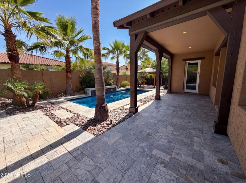 Listing details for 20620 Walton Dr, Buckeye, AZ 85396 : Don't miss 20620 W Walton Dr, a residence arranged for everyday comfort and functionality, featuring a cozy fireplace. The kitchen is equipped with all stainless steel appliances, an accent backsplash, an island, and great cabinet storage. The primary bedroom includes a walk-in closet, and its bathroom provides a separate tub and shower along with double sinks. Exterior amenities include a covered patio, a fenced-in backyard, and a dedicated in-ground pool. This residence perfectly blends practical design with exceptional outdoor living.. Included 100-Day Home Warranty with buyer activation