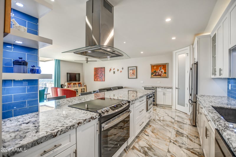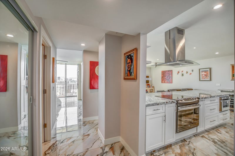 Listing details for 207 Clarendon Ave #H16, Phoenix, AZ 85013 : This fantastic and completely renovated Pied-a-Terre is bright and open with walls of glass. New stainless appliances, drawer microwave, beverage fridge, walk-in pantry, custom tile, under-counter lighting, new bathroom fixtures and commode...the upgrades are endless. Polished tile floors, upgraded granite, new cabinets and LED lighting throughout. Updated sliders, teak patio decks, huge island, new paint and baseboards. Residents enjoy concierge services and guarded entry, Olympic size heated pool w huge hot tub, BBQ's, fabulous community room, gym and retails shops with local vendors. The forever views with sunrises and sunsets, overlooking the pool, make this beautiful Al Beadle Historic home very special. Don't miss it!