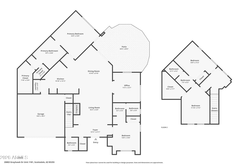 This beautiful 4 beds 4 baths home is located at 20802 Grayhawk Dr #1181, Scottsdale, AZ 85255 and is listed for sale at $799,000.00. This home was built in 2002, contains 2484 square feet of living space, and sits on a 0.06 acre lot. This residential home is priced at $321.66 per square foot.