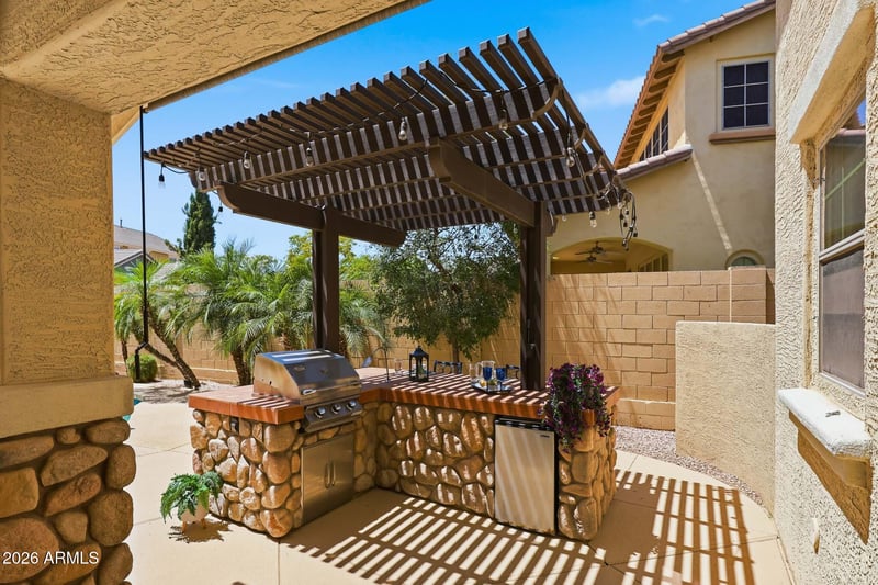 The backyard is designed for relaxation, featuring a heated pool, built-in BBQ, pergola, as well as plenty of room for outdoor living. Living in Verrado means you're never far from adventure, with miles of trails nearby and the high-energy Verrado Marketplace (featuring Target and Harkins) set to open just in time for the summer. Beyond your front door, you are perfectly positioned to enjoy Verrado's 26+ miles of trails and 70+ parks. Best of all, you'll be minutes away from the grand opening of the Verrado Marketplace this summer.