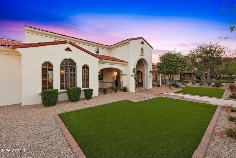 Listing details for 20991 Canyon Dr, Buckeye, AZ 85396 : Beautifully crafted Spanish Colonial estate ideally positioned across from one of Verrado's signature parks in Westmont Green. This exceptional custom residence offers 5,315 square feet of refined living, showcasing the high-end finishes and thoughtful design today's luxury buyer expects. The gourmet kitchen is outfitted with premium Viking stainless steel appliances, custom cabinetry, and elegant finishes that flow seamlessly into the dramatic great room. Exposed wood beams and a tongue-and-groove ceiling create warmth and architectural distinction, while expansive living spaces provide the perfect setting for both grand entertaining and intimate gatherings. Additional highlights include a private wine room, office, flex room or 5th bedroom, huge central courtyard, travertine tile, central vacuum system, and countless custom details throughout. The backyard features a resort-style desert oasis. Enjoy a sparkling pool and spa, covered ramada, built-in BBQ, fire pit, and low-maintenance artificial turf--all designed to maximize Arizona outdoor living. Ideally located near Verrado's golf course, shopping, dining, hiking and biking trails, this home offers luxury, comfort, and lifestyle in one extraordinary package.