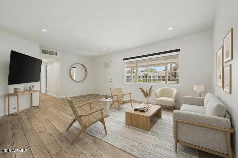 Listing details for 210 El Camino Dr, Phoenix, AZ 85020 : Fully refreshed and move-in ready, this North Central Phoenix home blends modern updates with an unbeatable location. If you've been waiting for a clean, updated home, this is it! Featuring 3 bedrooms and 2 bathrooms, it offers brand new carpet in the bedrooms and fresh interior and exterior paint for a crisp, modern feel. Enjoy a bright open layout with wood-look plank flooring, neutral tones, and recessed lighting. The kitchen includes espresso finish wood cabinetry, Corian countertops, stainless steel appliances, and a spacious breakfast bar. The primary suite has private backyard access and its own bath. The backyard features a covered patio, pavers, grass area, outdoor shower, and a sparkling pool. Close to dining like OHSO Brewery, shopping, freeways, and downtown.