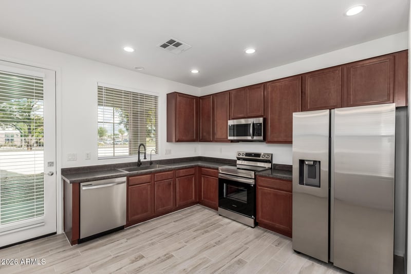 Listing details for 21026 Pickett St, Queen Creek, AZ 85142 : Discover unparalleled comfort and style in this stunning 3 bedroom, 2 bathroom home nestled in the vibrant Ocotillo Landing community. Boasting a spacious 2 Car Garage, this residence seamlessly blends modern elegance with family friendly functionality. Step inside to a bright, open-concept interior featuring tile wood flooring throughout, all new Kitchen Appliances, HVAC System and Water Heater installed in 2025. Retreat to the expansive primary suite, a true sanctuary with a generous walk-in closet and a luxurious en-suite bathroom. Indulge in the spa inspired shower tub, and dual vanity sinks. The Ocotillo Landing community elevates your lifestyle with exclusive access to a sparkling swimming pool, relaxing spa, BBQ grill area, and well-maintained playgrounds and parks perfect for fami