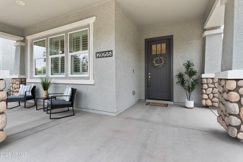 Listing details for 21055 Elm Way Ct, Buckeye, AZ 85396 : WALKING DISTANCE TO DINING/SHOPPING/SCHOOLS/FITNESS & POOLS (CENTER ON MAIN) IN MAIN STREET DISTRICT - VERRADO! It is like living in the heart of quaint small town!!! This Residence One plan by Porchlight Homes is the beautiful Craftsman style home with many tasteful options/upgrades/updates, such as: plantation shutters, covered patio, atrium sliding doors, 20x20 tiled floors, shaker style cabinets in the large kitchen, huge island with granite countertops, subway tiled back-splash/wall, stainless steel single bowl rectangular sink, fridge, ceiling fans, upstairs laundry, insulated garage, beautiful courtyard with POOL, and much more!