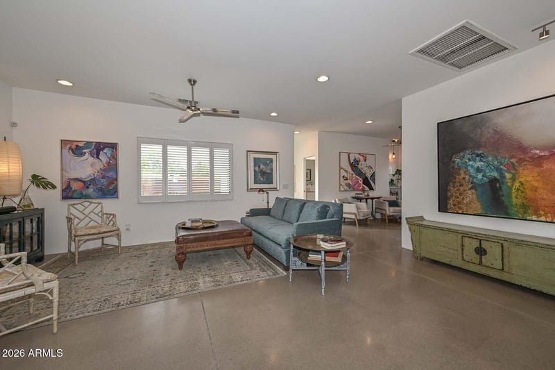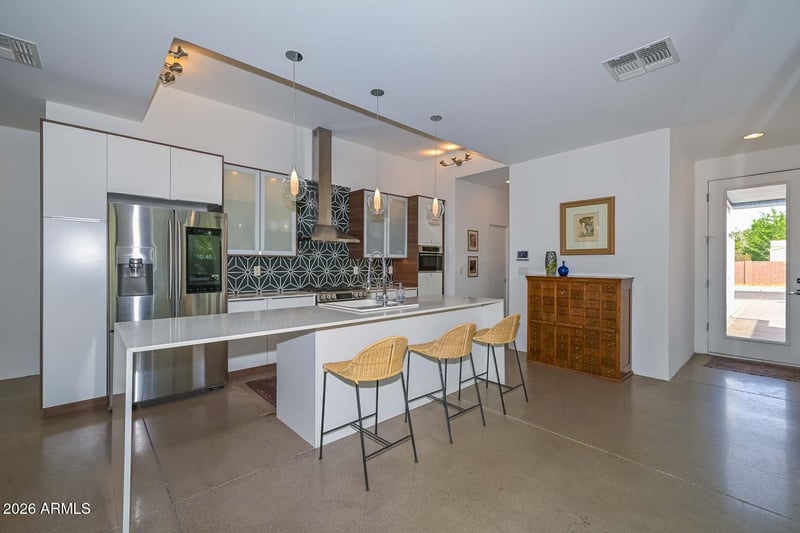 Listing details for 2109 Virginia Ave, Phoenix, AZ 85006 : Welcome home to a place where thoughtful design meets modern comfort and effortless indoor-outdoor living. This beautifully appointed home features 9ft ceilings, abundant natural light, plantation shutters, and elegant recessed and pendant lighting throughout. The gourmet kitchen is a true centerpiece, complete with a 5-burner gas stove, pot filler, farmhouse sink, smart refrigerator, walk-in pantry, and an expansive island with a recesssed charging tower and seating for 7-8--perfect for entertaining and every day living. Adjacent dining and living spaces open seamlessly through double sliding glass doors to a stunning patio, creating the ultimate indoor-outdoor experience. The luxurious primary suite offers a private courtyard, walk-in closet, and spa-inspired bath with multi-head shower, rainfall feature, ambient night lighting, and designer finishes. Additional bedrooms feature custom touches including barn doors, pocket doors, and lighted walk-in closets. Step outside to enjoy professionally designed landscaping with outdoor lighting, a pergola, rain chains, and multiple outdoor living areas. Additional highlights include smart home features, security system, EV outlet, Tuff shed with built-ins, and more. Ideally located near freeways, shopping, dining, healthcare, and schools--this home truly has it all.
