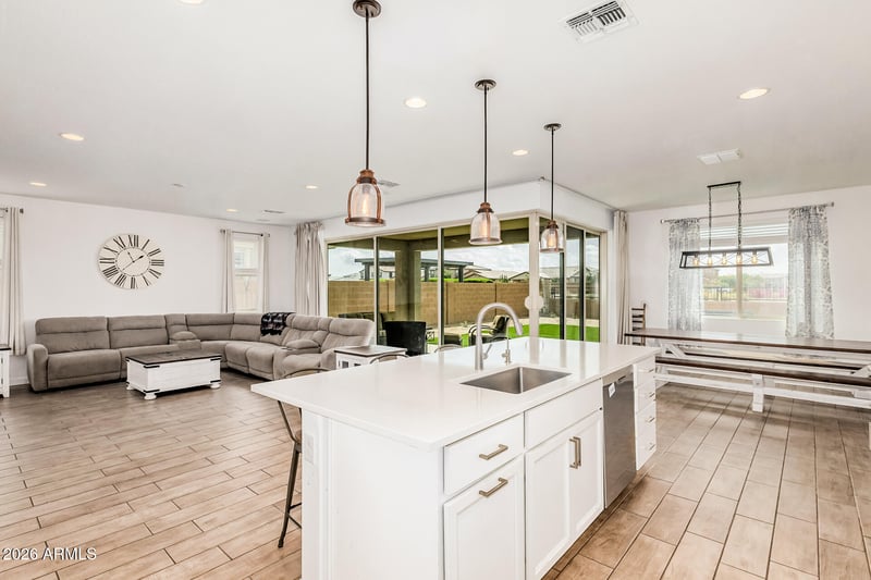 Listing details for 21095 Cattle Dr, Queen Creek, AZ 85142 : Spacious and thoughtfully designed, this 4 bedroom, 3.5 bath home includes a den flex bonus room and rare guest suite. The view-fence lot features no direct neighbors behind, & distant San Tan Mountain views. Inside, enjoy tile flooring in main living, brand new carpet, bright neutral finishes, and a chef's kitchen with white shaker cabinets, quartz island, and stainless appliances. A zero-corner sliding door creates seamless indoor-outdoor living. The spacious primary suite includes a soaking tub & tile shower surround. Additional features include R/O, water softener, RING system, 3-car garage, & RV gate. Backyard offers space to design your ideal outdoor retreat. Optional above-ground saltwater pool that can stay or be removed. Situated on a quiet N/S lot. See attached upgrades documents Located in the heart of Queen Creek, this home offers convenient access to popular shopping, dining, and entertainment including Queen Creek Marketplace and the newer Vineyard Towne Center. Enjoy nearby outdoor recreation at San Tan Mountain Regional Park, along with local favorites like Queen Creek Olive Mill and Schnepf Farms, known for their seasonal events and community atmosphere.