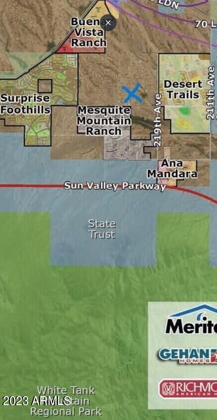 Listing details for 21200 219th Ave #'-', Surprise, AZ 85387 : BRING ALL OFFERS!!!!! Come in with your Highest and Best offer on this Prime Property in the fastest growing business area in Surprise, Arizona. This Property is located just miles from the future site of Microsofts new Data Center located right off the 303. Also near the Newly relocated corporate offices of Honeywell, Zero and many many more. This property is ideal for an investment or development project. Paved roads. Sun Valley Parkway is the gateway to the White Tank Regional Park, a beautiful 30,000-acre state park becoming a favorite for outdoor enthusiasts. Parcel is located within the City of Surprise and near Loop 303, Ideal for Retail or other Businesses. Property to South West of Parcel being developed by Mesquite Mountain Ranch phase 2.
