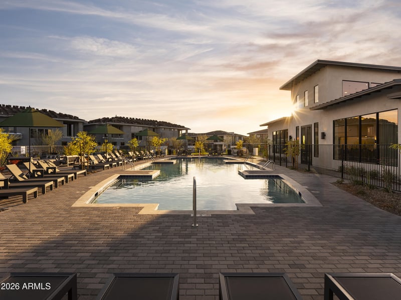Listing details for 2121 Sonoran Desert Dr #80, Phoenix, AZ 85085 : Toll Brothers new luxury condo available for immediate move-in. Resort-style amenities including a community center, fitness studio, pool, outdoor BBQs, firepit, outdoor gathering areas, and dog park. Covered front porch and upstairs balcony off primary suite. This beautiful home showcases an idyllic blend of everyday living and modern elegance. A cozy foyer immediately opens into the spacious great room that overlooks an airy casual dining area and the expertly crafted kitchen. Enhancing the kitchen is a breakfast bar, ample counter and cabinet space, as well as a sizable pantry. Secluded on the second floor, the stunning primary bedroom suite features an extensive covered balcony, a large walk-in closet, and a spa-like primary bath complete with a dual-sink vanity, deluxe shower, and a private water closet. Secondary bedrooms, one with a private balcony, feature sizable closets and share a hall bath with dual-sink vanity. Also featured in the Residence Two is a convenient powder room and everyday entry, centrally located laundry on the second floor, and ample storage throughout.