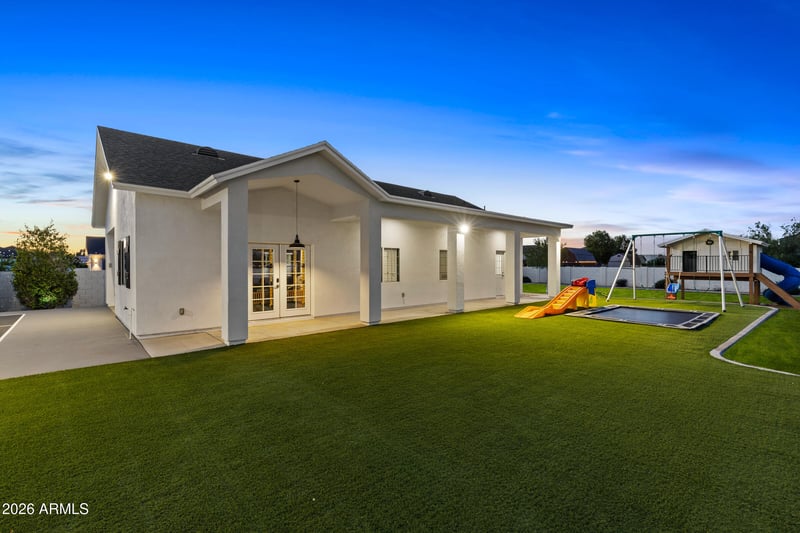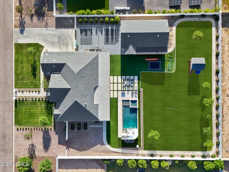 Listing details for 21230 Cedar Waxwing Dr, Queen Creek, AZ 85142 : Thoughtfully designed inside and out! Located just a mile or two from all of Queen Creek major attractions, this home offer so much more than the average. Resort style pool with slide and jumping deck, hot tub for the cool nights, gas fire pit for additional gathering space with friends, turf around in the immediate backyard for easy maintenance and no water near the foundation, grass out back for throwing the ball and watching the kids play in the fully insulated play house, sunken trampoline, raised garden beds, and even a perimeter sidewalk around the backyard for scooters and skates! This is a fully landscaped home with casita and full size home gym. If you are looking for a place that really does check all the boxes then come give this one a look!